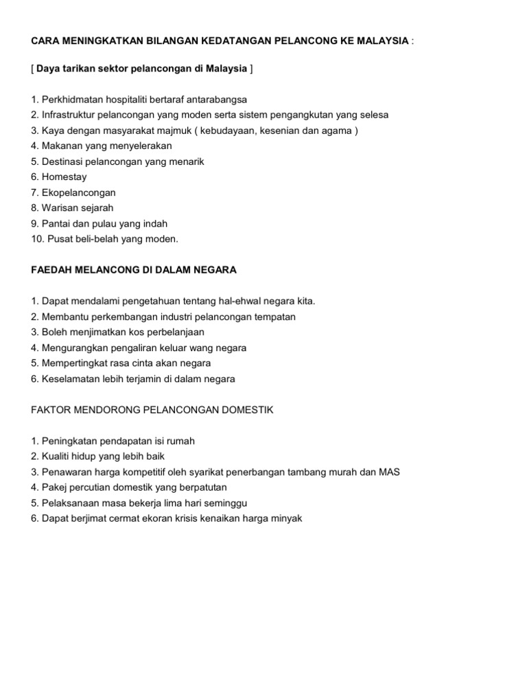Cara Meningkatkan Bilangan Kedatangan Pelancong Ke Malaysia Pdf